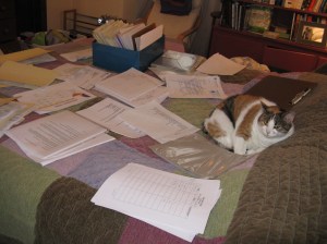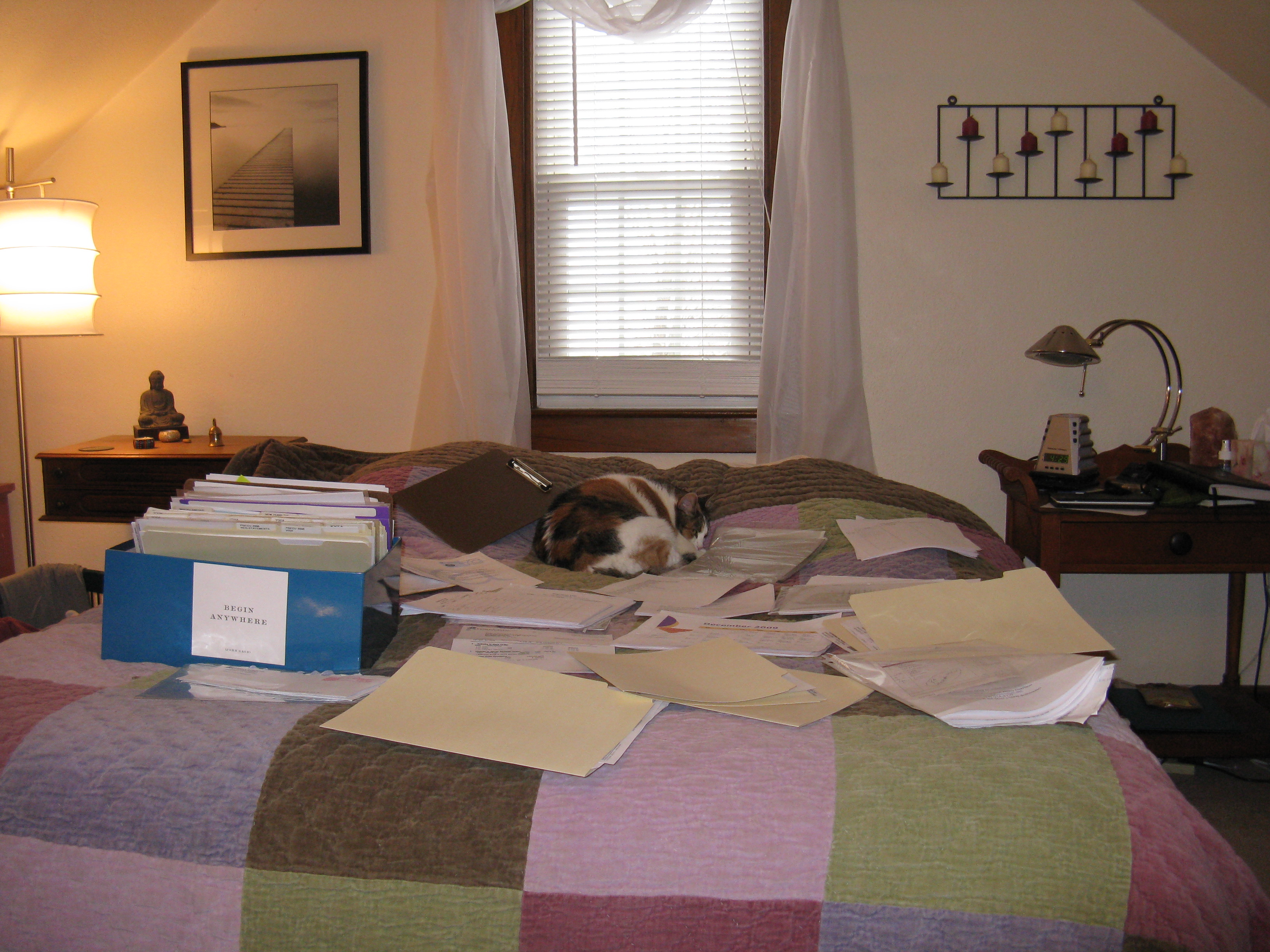 I hauled out my Begin Anywhere box, put This American Life on the speakers in the bedroom (which annoyed the hell out of the cat) and began s-p-r-e-a-d-i-n-g 0-u-t. The cat (who cannot get by on less than 23 hours sleep a day) began to get alarmed.
