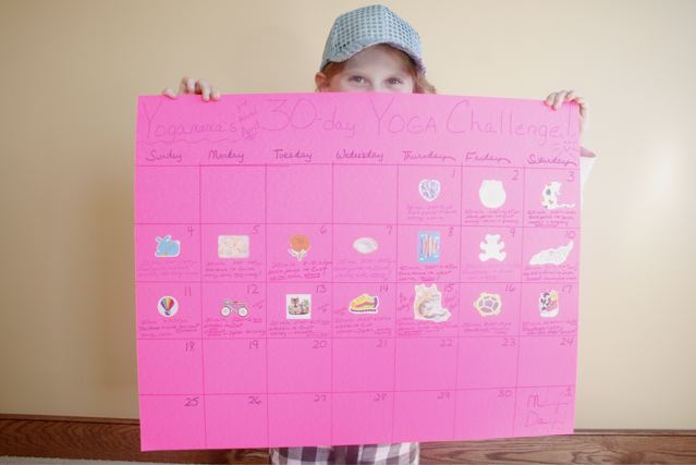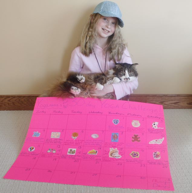 Cindy Davis Meixel is one of the Virtual Yogarians, and she wrote that her daughter, Aria made her a calendar at the beginning of the month and for every day Cindy does yoga, Aria gives her a sticker.