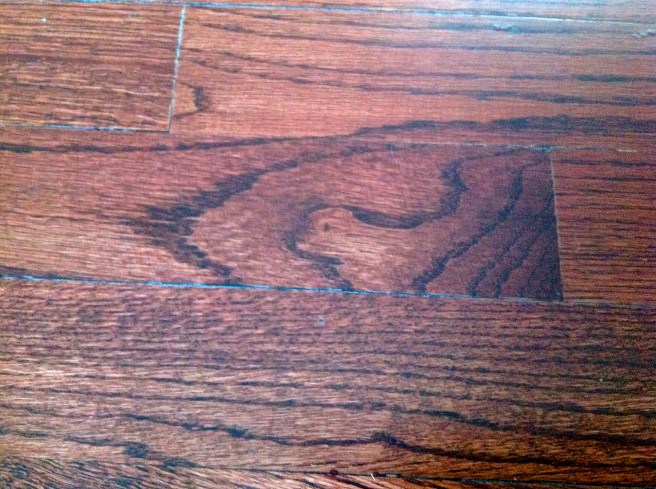 When you spend a week doing nothing but staring at the floor for 9 hours every day, the mind goes a teensy bit nutty. You start seeing things. In the wood, I mean. Real stuff. Drama. With people and animals. There were sharks, and witches with long noses, and a Schnauzer on the floor in front of my favorite cushion.