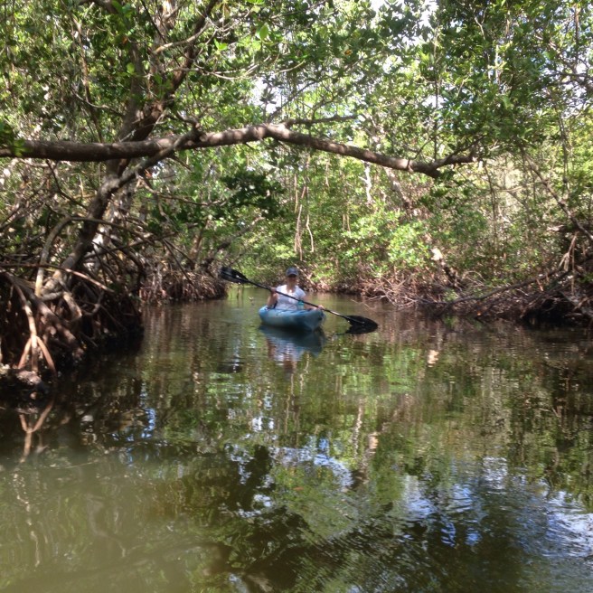 We paddled a marked kayak trail through mangroves and at one point I got so close to a big heron I could have easily touched it. (It freaked me out, actually.) It is unnerving when a big, quiet, notoriously shy bird like that allows a person to get so close without taking off.