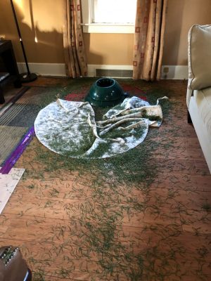 While I walked Stella to the Post office today, G took down the tree.