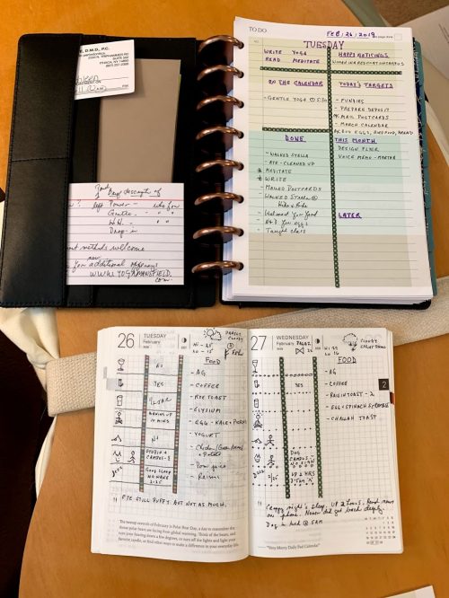 I’m still spending a little time with my planner everyday, writing down and reviewing my goals. I got another one recently after reading and watching YouTubes extolling its virtues. It’s the Hobonichi Techo.