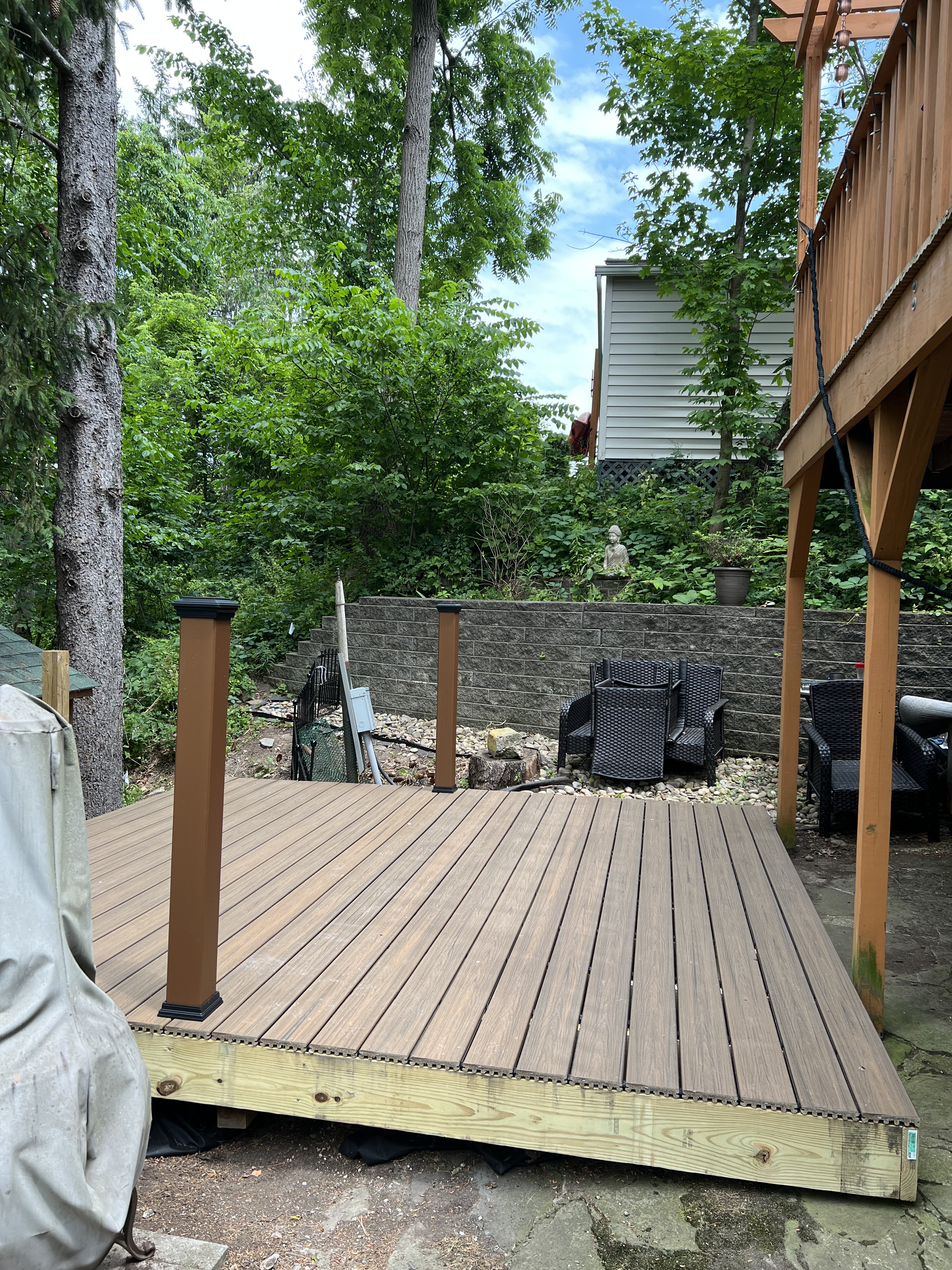 Here’s where’s she’s at with this project, currently: The new decking is laid, and it’s sweet. Fred was a big help. Everyone needs a Fred in their life: someone with an engineer’s mind, crazy skillz, and a cheerful disposition.