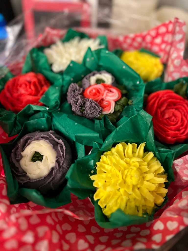 For Valentines Day G ordered us a bouquet of flower cupcakes. OMG.