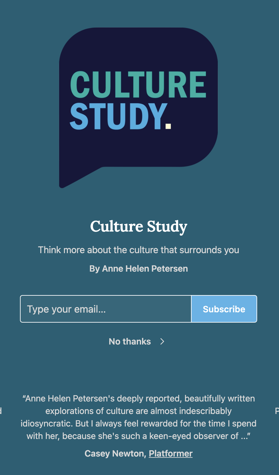 The Substack of Anne Helen Peterson (the first Substack I ever subscribed to. I started with her free newsletter and wanted more.)