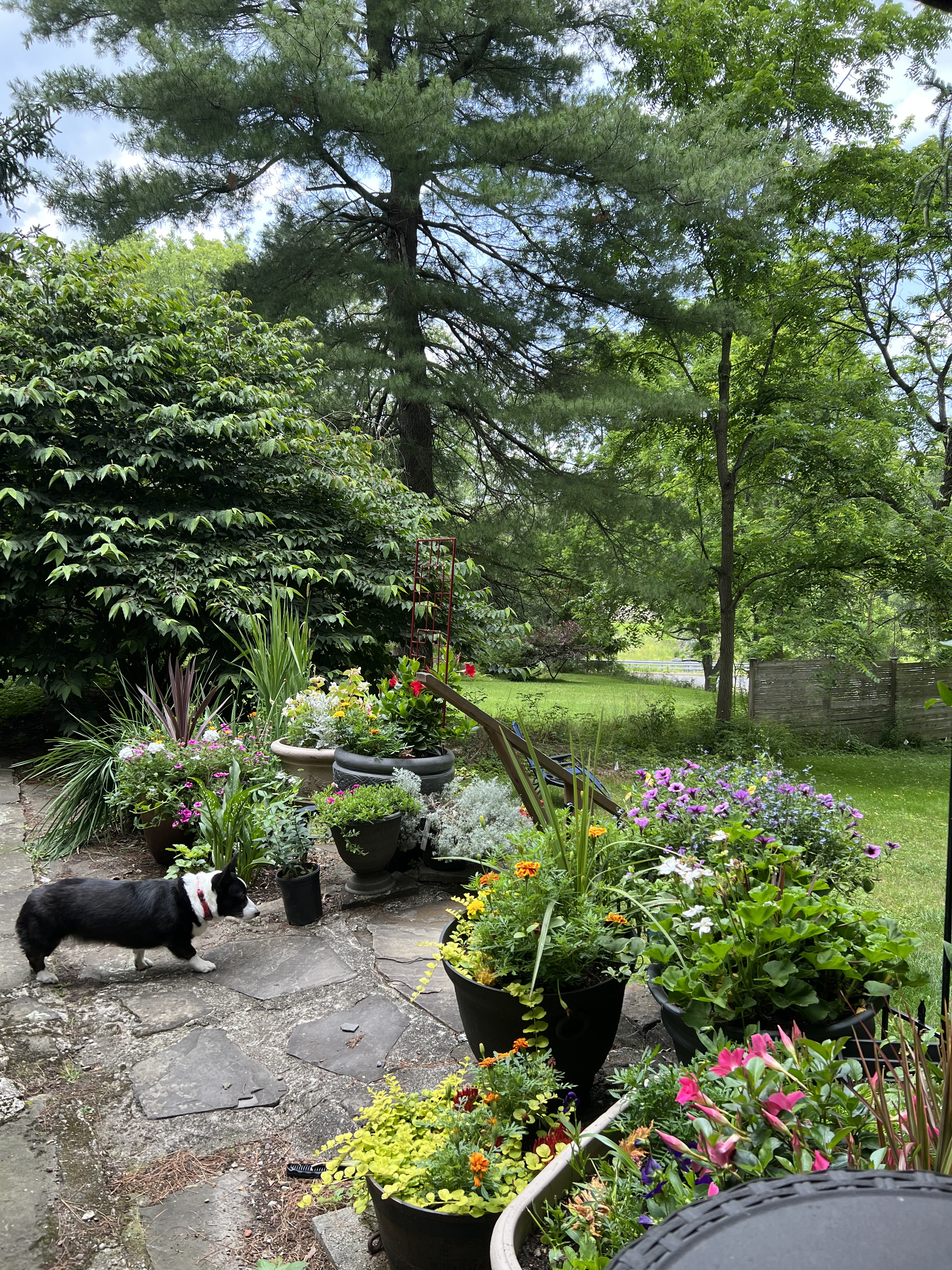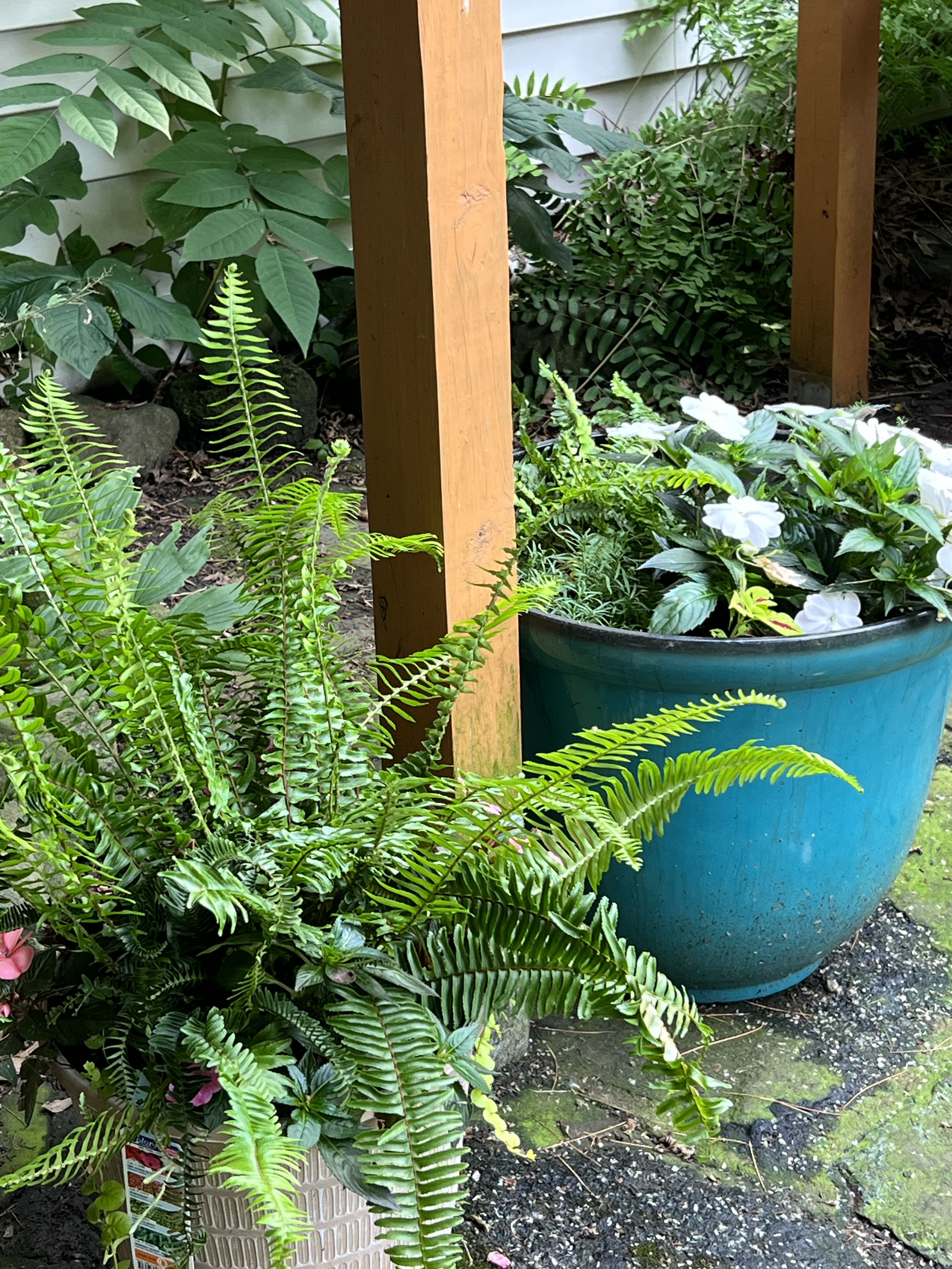 My container garden. “Inspired” isn’t the right word. I just can’t dnddm admiring and appreciating its beauty. I find it so wondrous and happy-making. G did a great job. The ferns were new this year, and I love them, and they will come back next year.