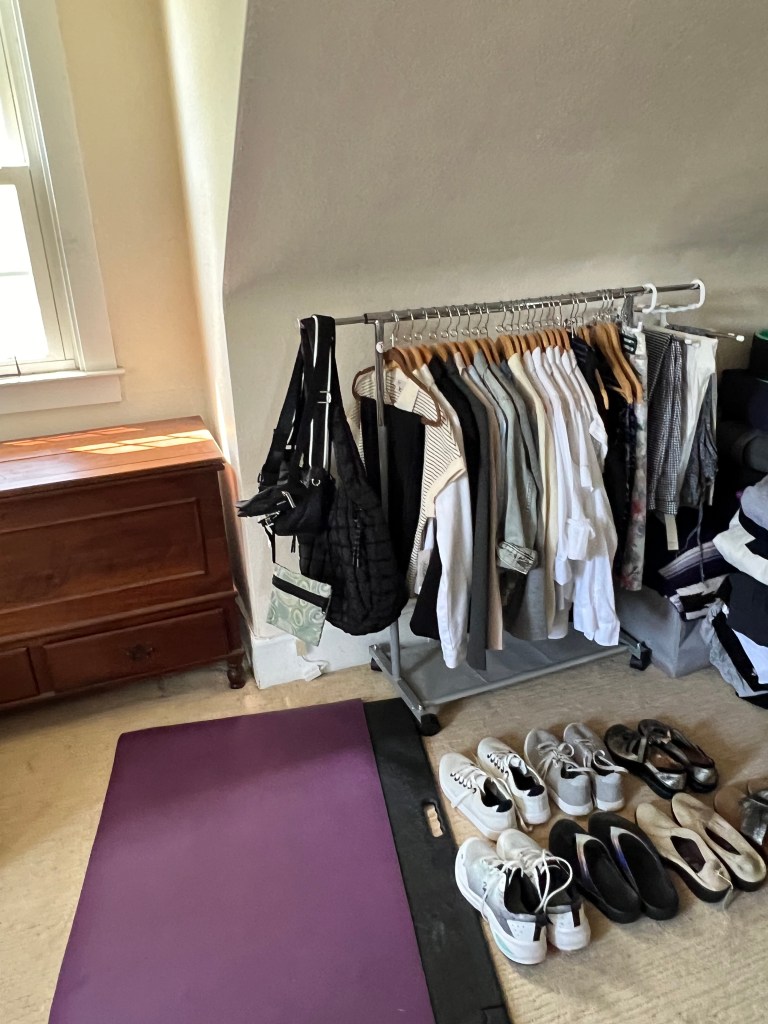 I’m a yoga teacher, slash writer, slash doggy mama, slash partner of a coach. G and I have clothes for sporting events, Brewpubs, coffee shops, walking paths, and yoga classes. Occasionally, a nicer restaurant.