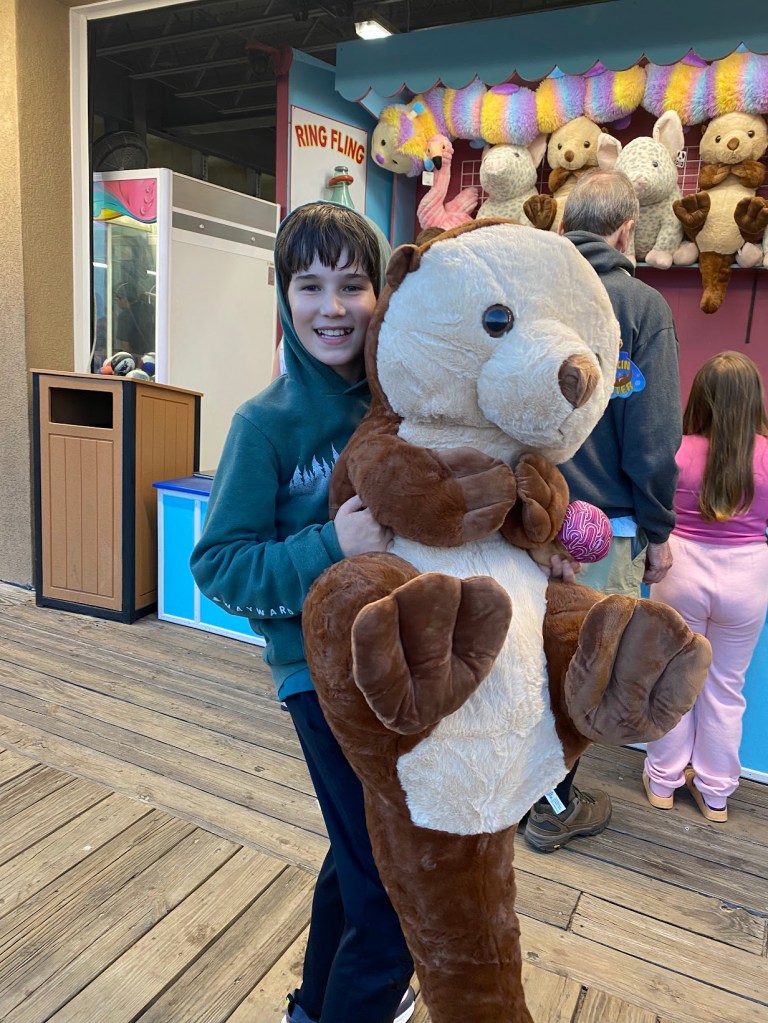Obie won a huge stuffed otter at the hardest game on the boardwalk. (Ring Fling) We’ll have to mail it to him!