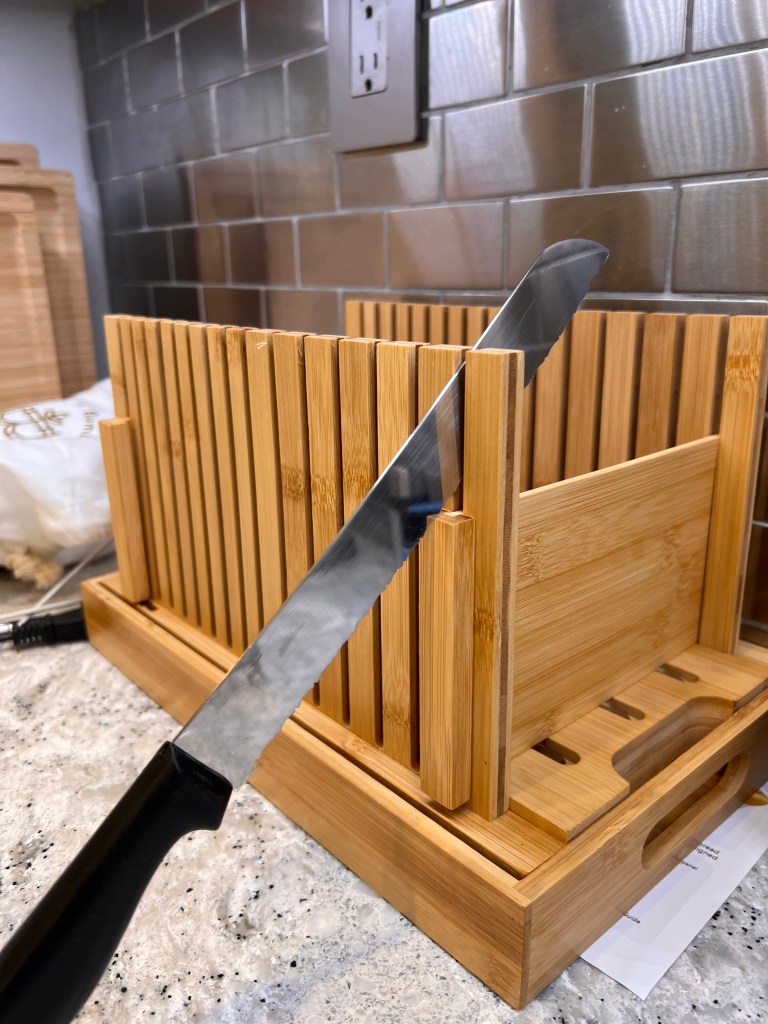 I bought five pounds of Bob’s Red Mill unbleached white flour, a bamboo bread slicer, and a massive amount of yeast.