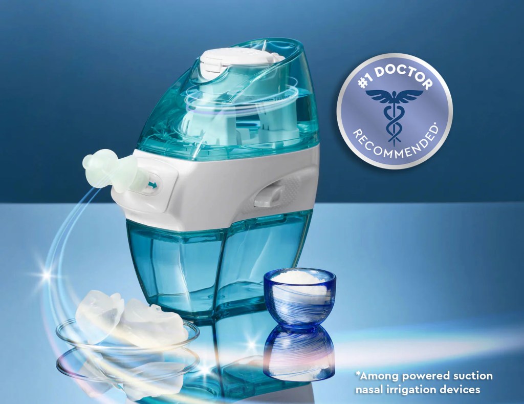 But I recently got a Navage. It’s a machine that makes cleaning my nasal passages and sinuses much more effective and less of a hassle than my Neti Pot with its packets of salt, stirring, and dissolving, etc. This one comes with pods of saline that dispense right into the water.